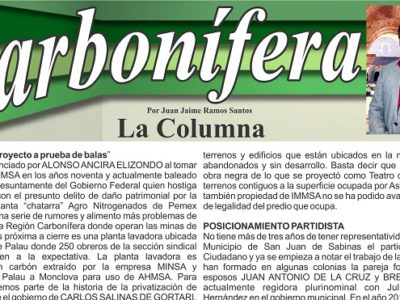 Por Juan Jaime Ramos Santos.- “Tenemos un proyecto a prueba de balas” El proyecto anunciado por ALONSO ANCIRA ELIZONDO al tomar posesión de AHMSA en los años noventa y actualmente baleado por intereses presuntamente del Gobierno Federal quien hostiga al empresario con el presunto delito de daño patrimonial por la venta de la planta “chatarra” […]