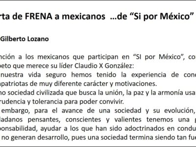Enviado por Miguel Ángel López.- Él es LA PATRIA, así con mayúsculas, se trata de la casa que nos recibió al nacer, dejemos esto en claro, no es el estado, no son sus gobiernos, esos, venturosamente son pasajeros, lo permanente es la geografía y con ello, su gente. Podemos estar enojados y cargar alforjas […]