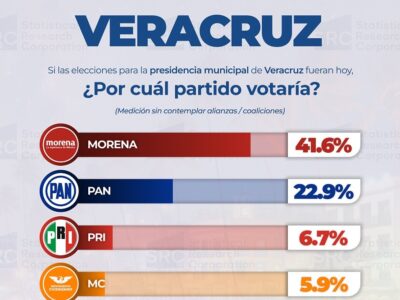 *Morena aventaja en los principales municipios de Veracruz para las presidencias municipales. El próximo 1 de junio Veracruz volverá a las urnas para elegir nuevos presidentes municipales. Aunque aún no hay candidatos oficiales, las preferencias por uno u otro partido ya son notorias. De acuerdo con la encuesta de Arias Consultores, en Xalapa, […]