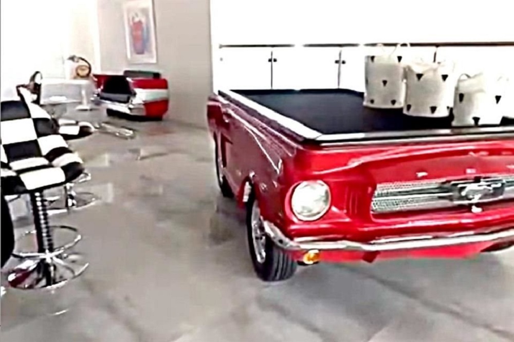También tiene acabados de lujo y hasta una mesa de billar montada sobre la base de una réplica de un Ford Mustang.