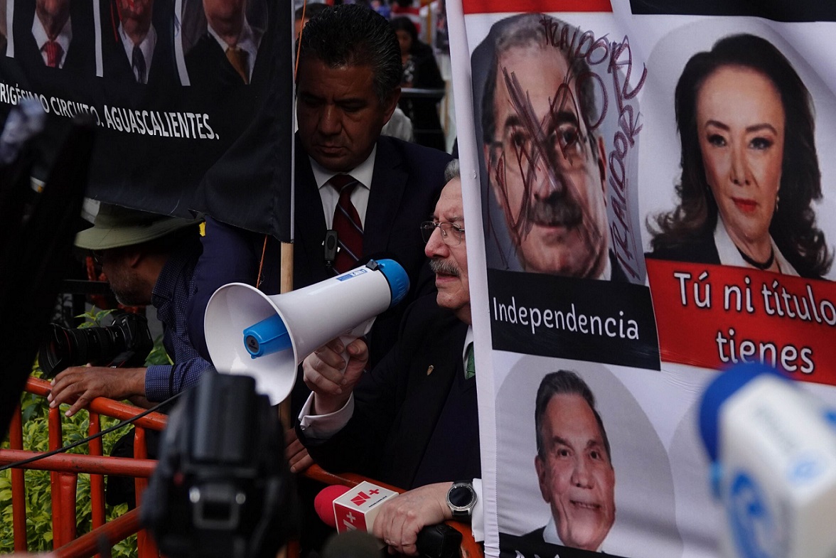 El ministro Luis María Aguilar, uno de los más críticos de la reforma, salió a dirigirse a la multitud al finalizar la sesión. “Hicimos todo lo que estuvo en nuestras manos, pero a veces el peso de la justicia se enfrenta a intereses que son difíciles de vencer”, dijo mientras alzaba los hombros. «Todos somos PJF», agregó, con la voz entrecortada. El ministro de la Suprema Corte de Justicia de la Nación Luis María Aguilar salió tras finalizar la sesión en la cual se discutió la Reforma al Poder Judicial.