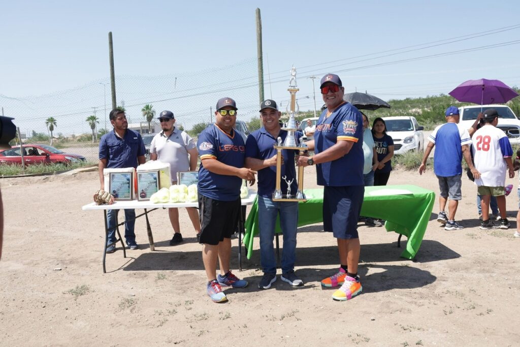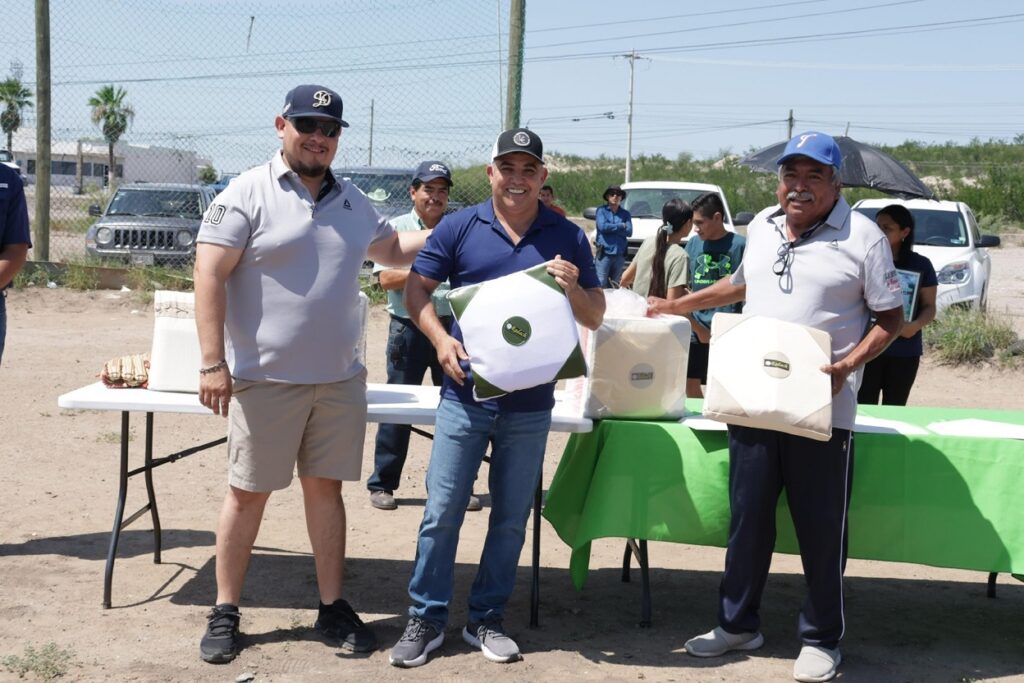 Durante el evento se realizó también la entrega de equipo deportivo y pelotas a los equipos participantes, como parte del respaldo que brinda la administración municipal al desarrollo y fortalecimiento del deporte en Sabinas.