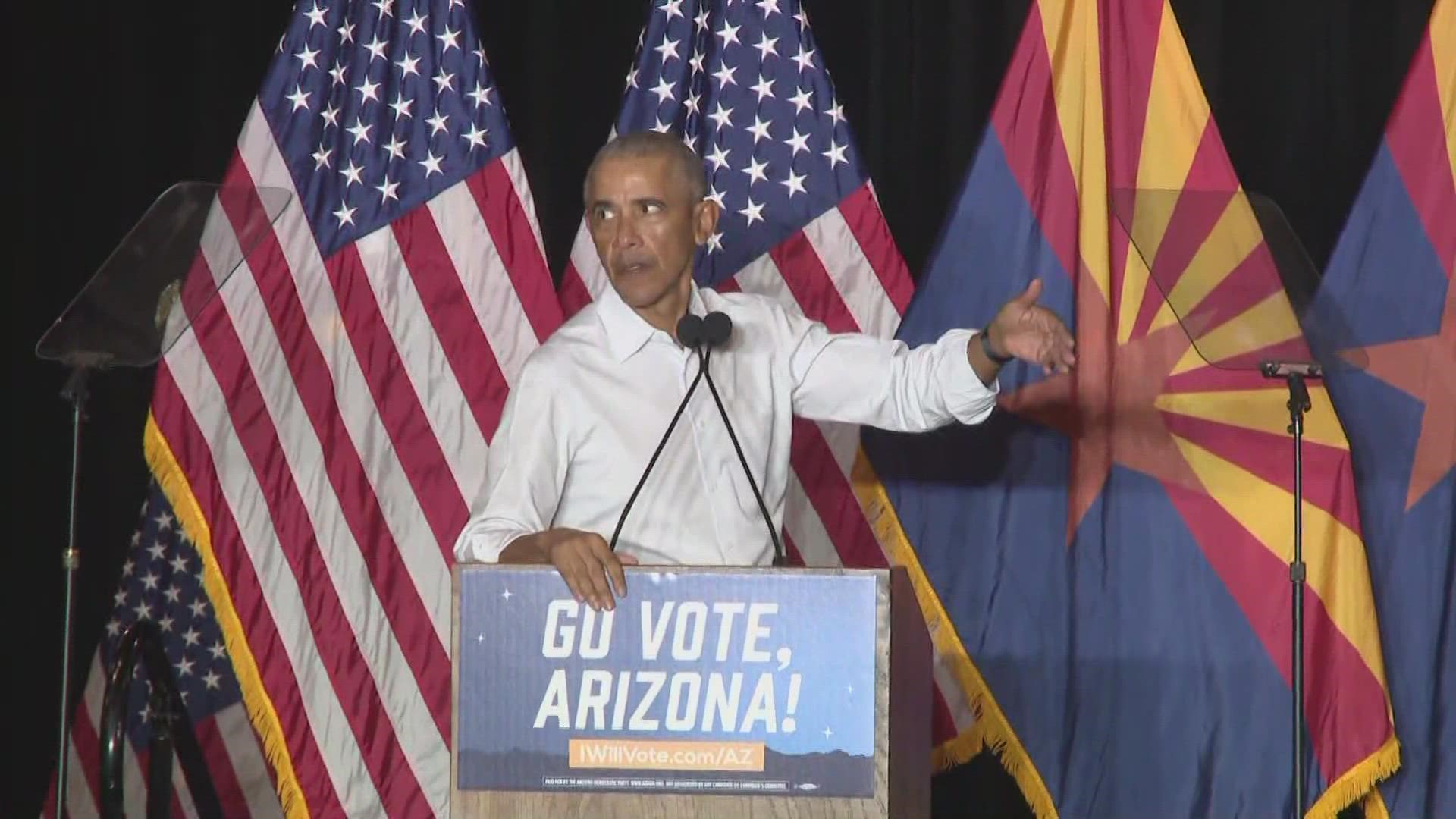 Si los candidatos republicanos aquí tienen éxito, argumentó Obama, “la democracia tal como la conocemos puede no sobrevivir en Arizona”.“Eso no es una exageración; eso es un hecho”.