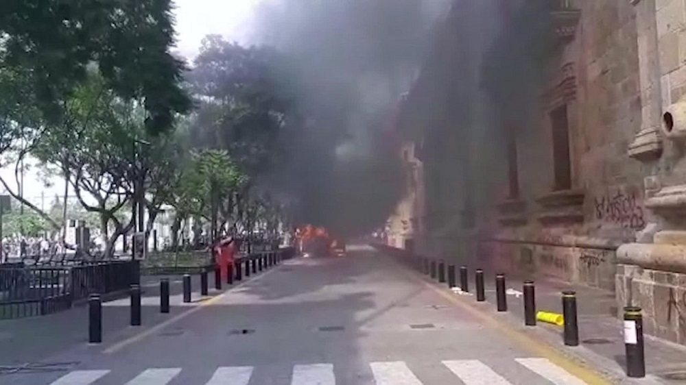 La manifestación, que inició de forma pacífica, derivó en disturbios cuando un grupo de inconformes irrumpió en el Palacio de Gobierno estatal y causó destrozos en el interior del edificio con la intención de exigir la renuncia del gobernador de Michoacán Alfredo Ramírez Bedolla.