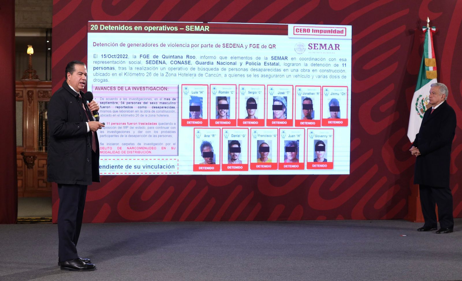 Además, se detuvo a los responsables de homicidios en Quintana Roo: Edy “N”, Rodrigo “N”, Rodolfo “N”, Edwin “N”, Axel “N”, Grisel “N”, Christian “N”, Jaime “N”,