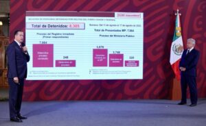 El pasado jueves, el subsecretario de Seguridad Pública de la Secretaría de Seguridad y Protección Ciudadana (SSPC), Ricardo Mejía Berdeja, presentó el informe semanal de la estrategia durante la conferencia matutina del presidente Andrés Manuel López Obrador.