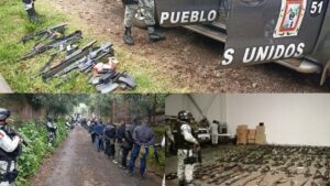 En Progreso de Obregón, Hidalgo, tres personas fueron capturadas en posesión de un arma larga.Y en Ciudad Juárez, Chihuahua, una persona fue aprehendida, quien llevaba 406 pastillas de fentanilo y 1.3 kilogramos de metanfetaminas.