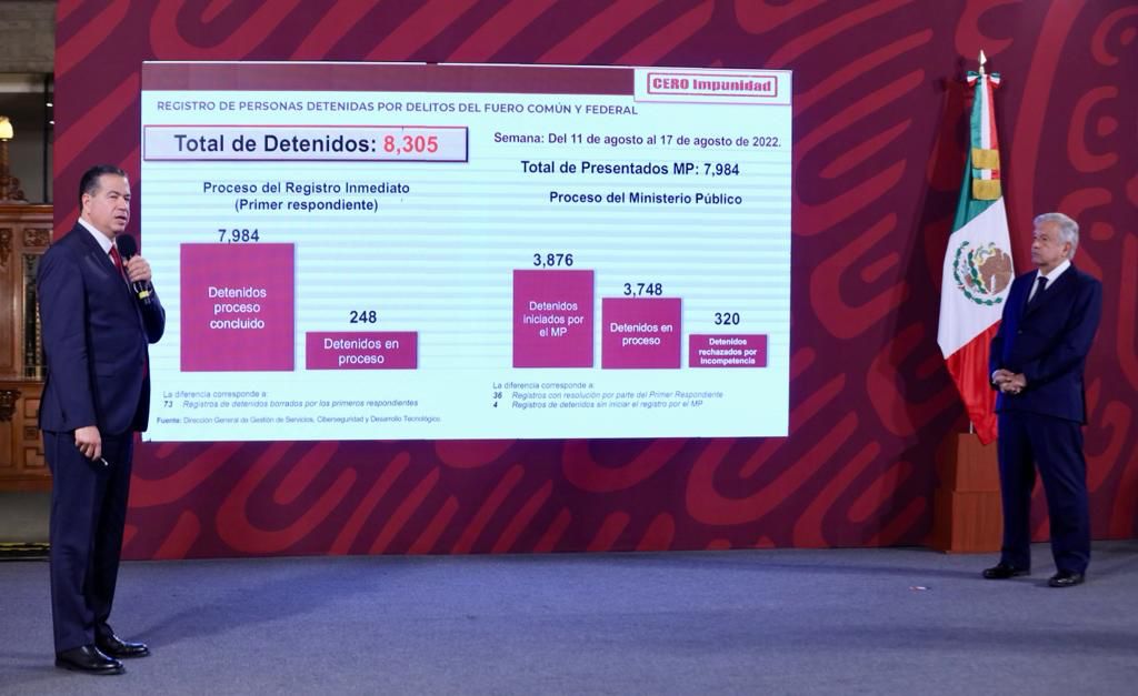 Con la política Cero Impunidad del Gobierno de México permitió detener, a un total de 8 Mil 305 personas.