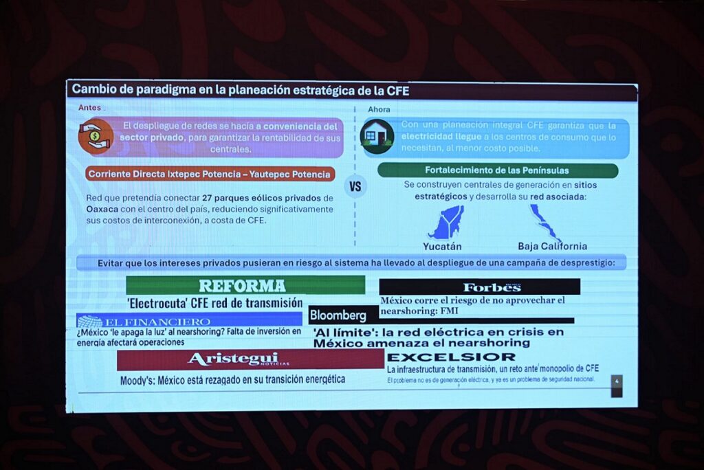 Bajo este contexto, el Presidente López Obrador expuso a medios de comunicación que han venido sobajando a la CFE, para con su narrativa, abrir paso a la privatización. Medios como Reforma, Bloomberg, El Financiero, Aristegui y Excelsior, mantienen una narrativa de descredito hacia la paraestatal.