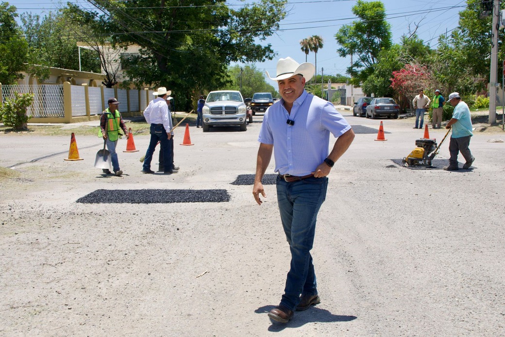 Sabinas, Coah.- El alcalde municipal José Feliciano “Chano” Díaz Iribarren continúa firme con las acciones de mejora urbana, encabezando una campaña intensiva de bacheo, limpieza y mantenimiento en distintas colonias del municipio.