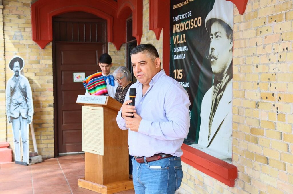 Sabinas, Coah.- Con profundo respeto por la historia y el legado de los grandes personajes de México, el alcalde de Sabinas, José Feliciano “Chano” Díaz Iribarren, encabezó la ceremonia conmemorativa del 105 Aniversario del Armisticio de Pancho Villa, en las instalaciones del Museo que lleva el nombre del Centauro del Norte, ubicado en la zona centro del municipio.