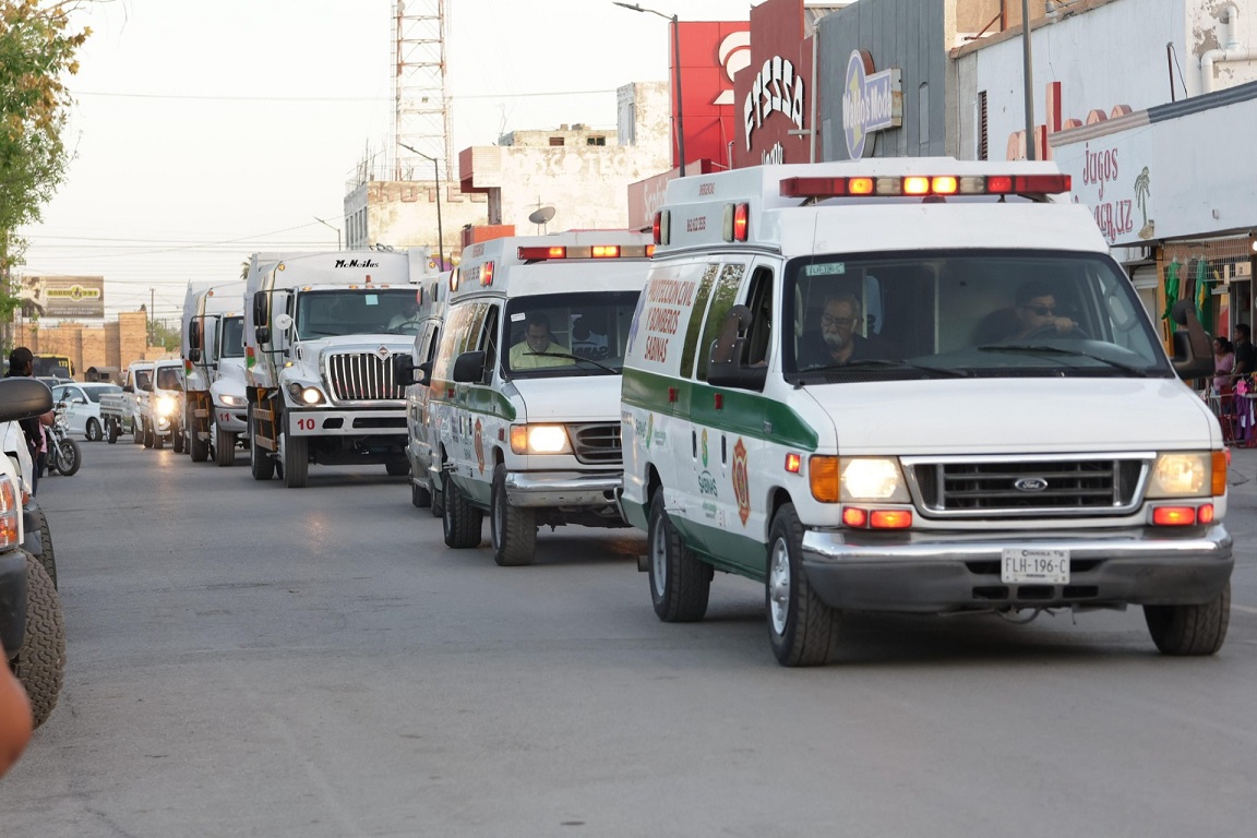 Durante la ceremonia, el presidente municipal entregó dos modernos camiones para el mejoramiento del Servicio de Recolección de Basura, 3 Ambulancias equipadas que fortalecerán el parque vehicular del Departamento de Bomberos y Protección Civil, además de 4 vehículos utilitarios de reciente modelo.