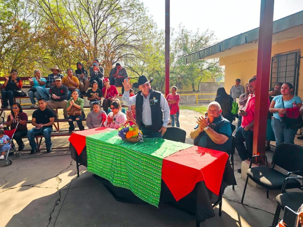 Sabinas, Coah.- El alcalde de Sabinas, José Feliciano “Chano” Díaz Iribarren, acudió como invitado especial a la Escuela Primaria Amado Nervo, turno matutino, en la Villa de Agujita, donde se realizó el festival conmemorativo por el Aniversario de la Revolución Mexicana.