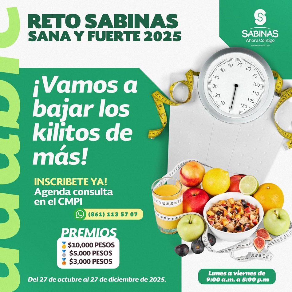 El reto, que se estará llevando a cabo del 27 de Octubre al 27 de Noviembre, está dirigido a toda la ciudadanía de Sabinas, así como a los funcionarios y trabajadores municipales, quienes se han sumado de manera entusiasta a esta iniciativa que busca mejorar la salud física, emocional y nutricional de las personas.