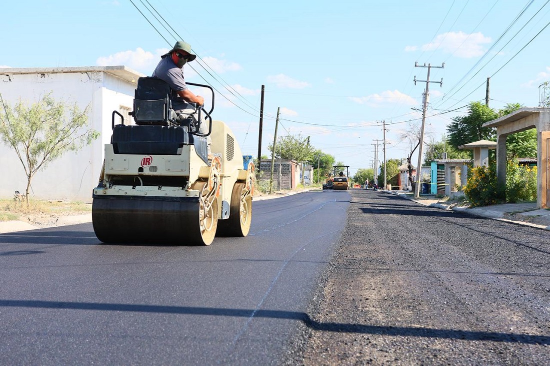 En la colonia Américo Rodríguez se trabaja en 4 Mil 023 metros cuadrados de carpeta asfáltica, con la construcción de cordón cuneta, base y limpieza, acciones que permitirán mejorar la movilidad y la calidad de vida de las familias de este sector.