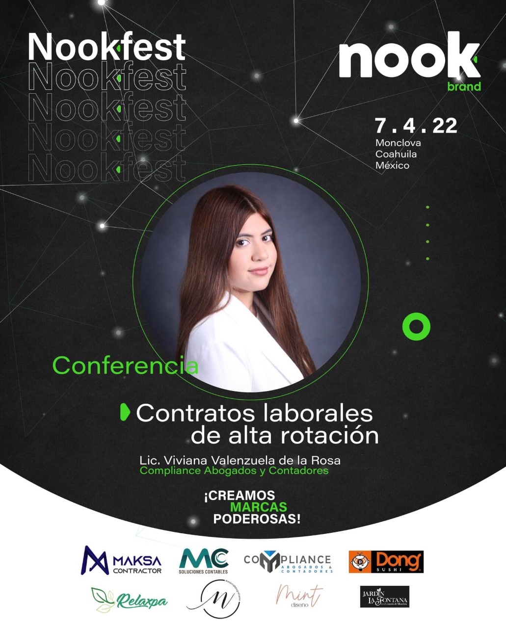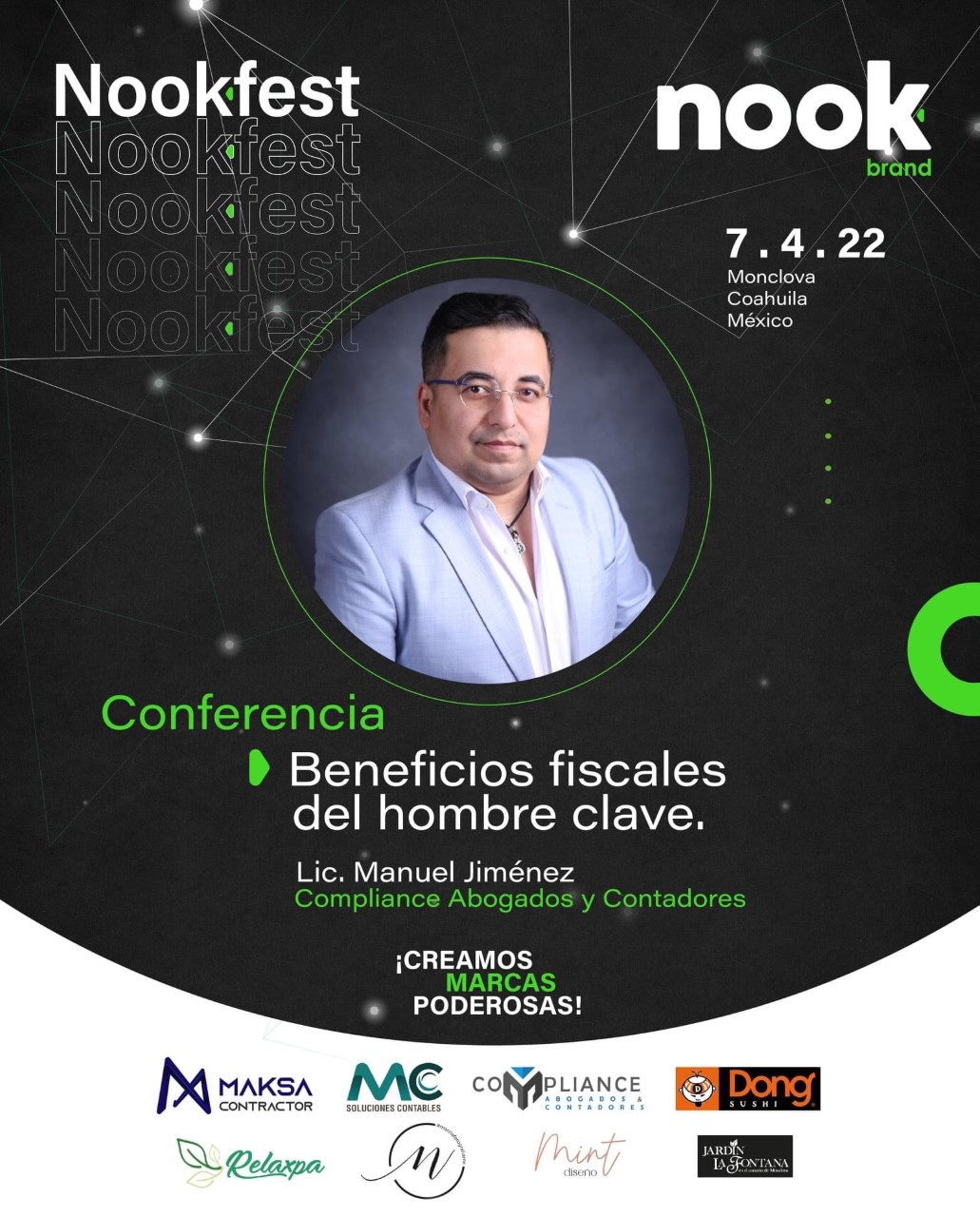 El pasado 7 de Abril del presente año, la empresa de servicios jurídicos y administrativos, COMPLIANCE Abogados & Contadores, impartió conferencia en la ciudad de Monclova Coahuila, atendiendo la invitación a participar en el evento de Networking empresarial NOOK FEST, organizado por la agencia NOOK BRAND, empresa de publicidad digital residente en la ciudad de Monclova.