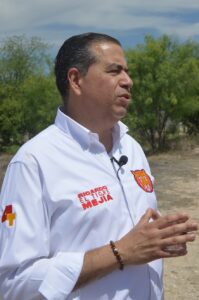 Sabinas, Coah.- Acompañado por el empresario Ing. Fernando Mendoza Bernal, el candidato por el PT al gobierno del estado Ricardo Mejía Berdeja y durante su gira que ha llamado “Corruptour”.