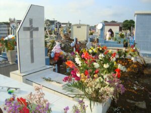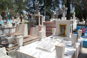 En la noche de los días 28,29,30 y 31 de Octubre y 1 y 2 de Noviembre, en muchos panteones o cementerios, se encuentran llenos de gente que están conviviendo con sus familiares muertos y acompañándolos con velas y veladoras.