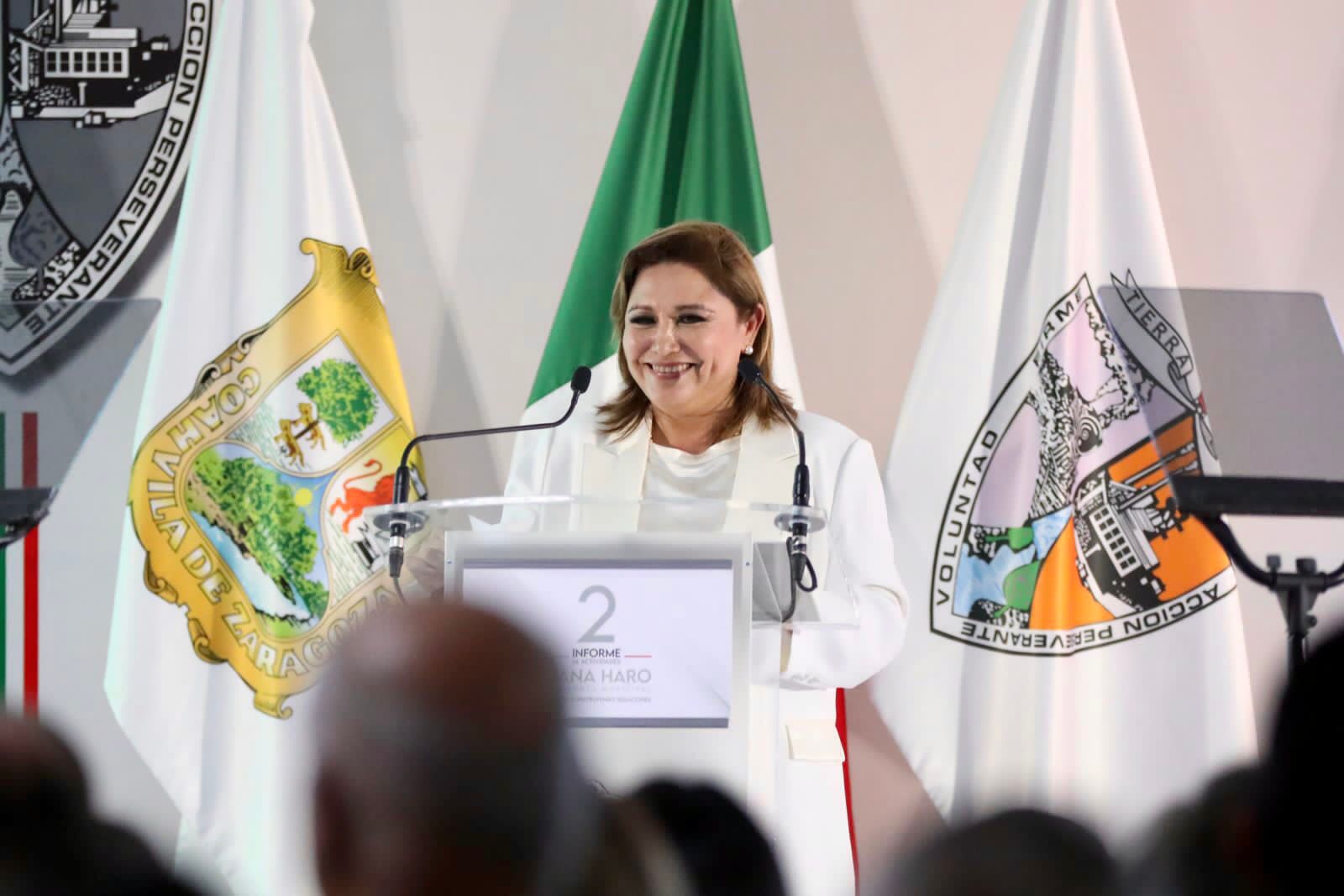 Diana Haro, dijo que el gobierno municipal 2022-2024, que preside, se basó en “cuatro ejes rectores”, como base del crecimiento de la otrora ciudad limpia y hospitalaria ciudad de Sabinas: Sabinas de Acción Perseverante; Sabinas Digno y Hospitalario; Sabinas Firme e Integral y Sabinas Moderno e Innovador…