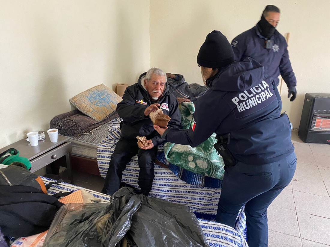 Durante el recorrido, las autoridades visitaron el albergue “La Casa del Peregrino”, ubicado en la colonia Sarabia, donde se entregó comida caliente, chocolate, pan y cobijas a las personas resguardadas, brindando atención directa y humanitaria a quienes más lo necesitan.