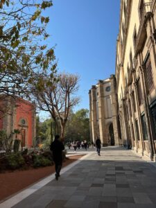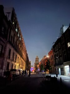 Todavía no amanecía cuando entre la oscuridad atravesamos el Jardín Nezahualcóyotl, con los grandes árboles y bellas plantas del Palacio Nacional.