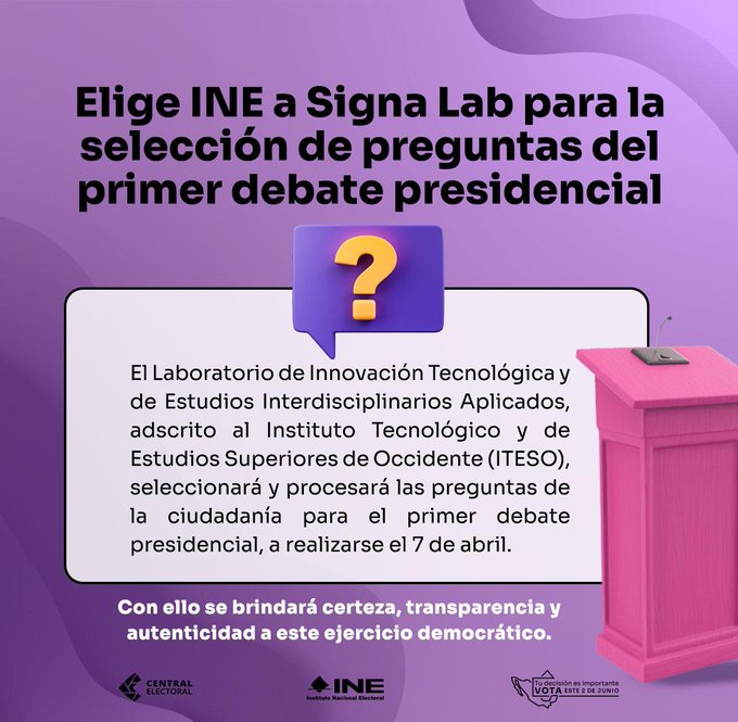 El Consejo General del INE aprobó un proyecto para que toda la ciudadanía, a partir de los 13 años, pueda enviar preguntas desde redes sociales para que sean consideradas en el primer debate presidencial, que se llevará a cabo el próximo 7 de Abril.