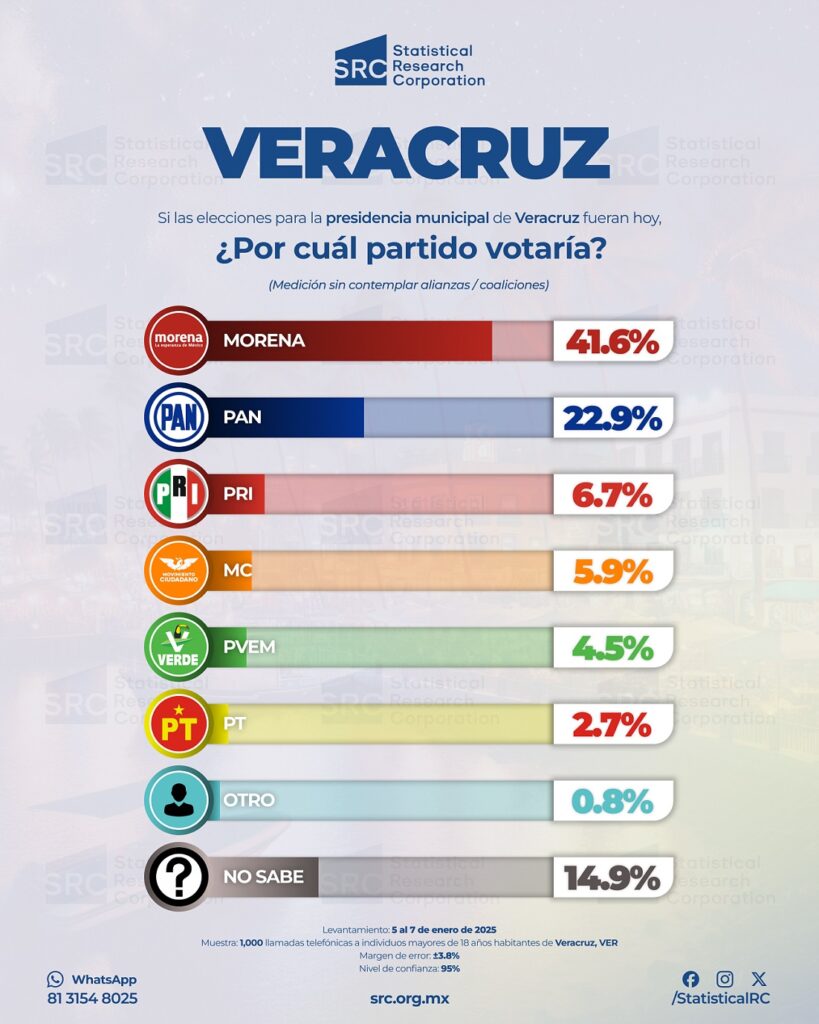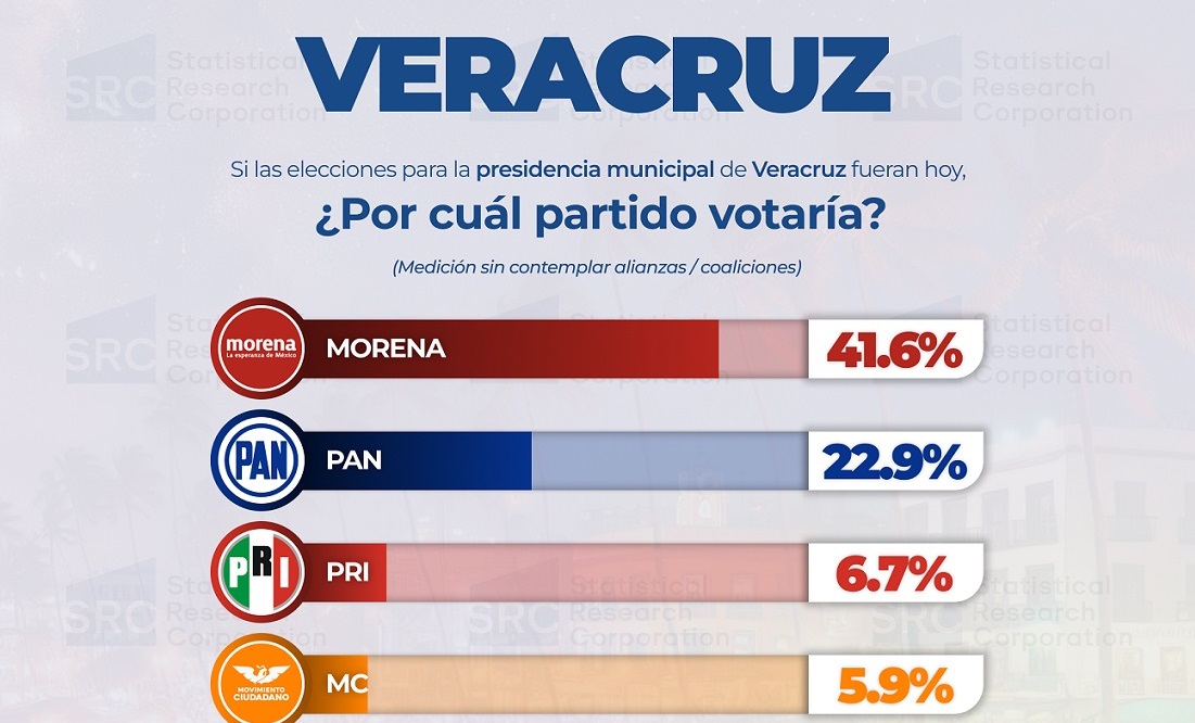 En la ciudad de Veracruz Morena presenta una mayor ventaja frente a sus oponentes.
