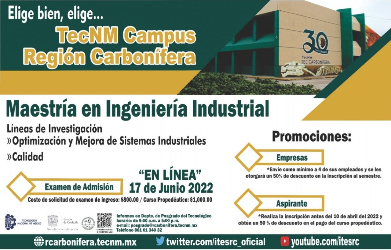 Maestría en Ingeniería Industrial Líneas de Investigación: >> Optimización y Mejora de Sistemas Industriales >> Calidad