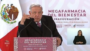 Aun así, de todos modos, el Presidente AMLO dice en tono burlón que si la Megafarmacia no funciona, esta, tanto Carlos Loret de Mola como los de El Universal y Reforma, estarán atentos de él, por lo que todo se sabrá. Entre el público, un hombre le pide atentamente al borde del éxtasis: “Presidente, mándeles su vitacilina”.