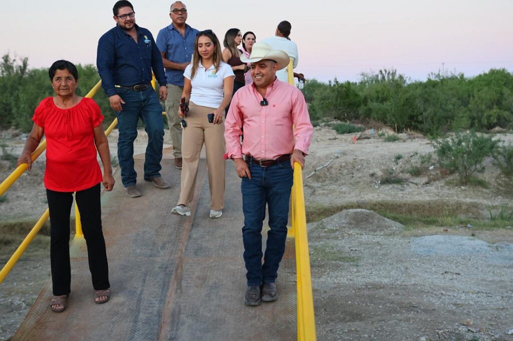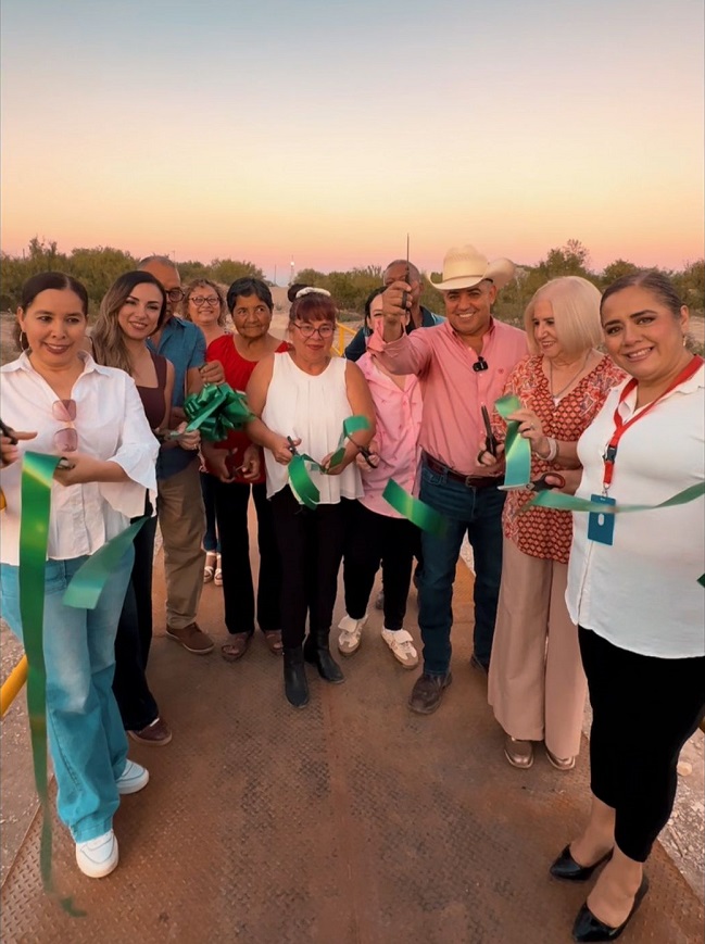 El alcalde José Feliciano “Chano” Díaz Iribarren, acompañado de la presidenta honoraria del DIF Sabinas, Sra. Alma Iribarren Madrigal, encabezó la entrega oficial de este importante puente que pone fin a décadas de dificultad y riesgo para cientos de vecinos, especialmente niños y trabajadores.