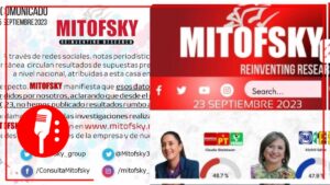 La consultora Mitofsky desmintió que sea suya  la encuesta en donde Xóchitl Gálvez aparece con una diferencia mínima de 0.8 por ciento en la preferencia de los votantes respecto a Claudia Sheinbaum.