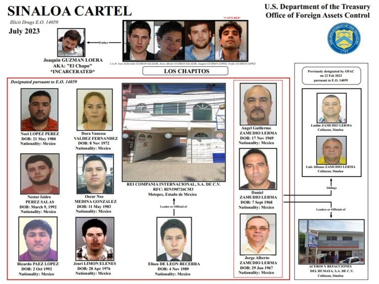 Las personas que aparecen en la lista negra del Control de Bienes Extranjeros del Departamento del Tesoro de Estados Unidos están relacionadas con Los Chapitos