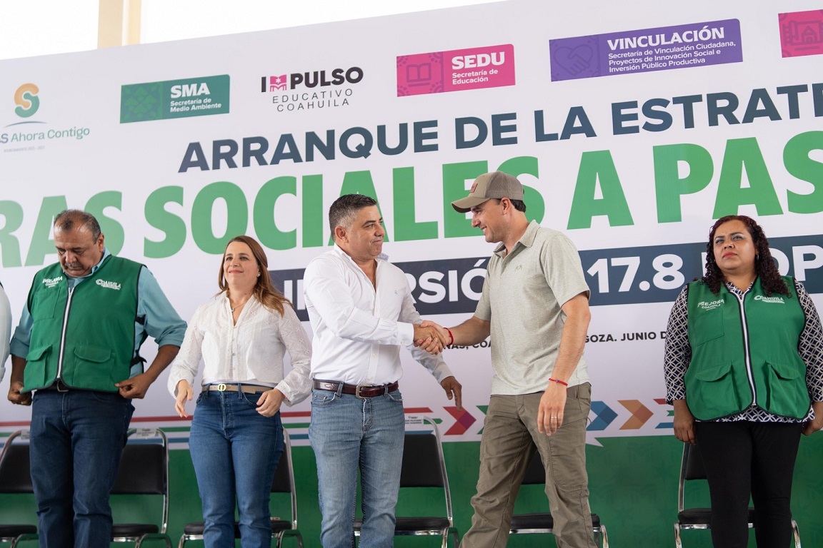 Fue en el marco del arranque de obras sociales a pasos de gigante y programa verde verde Coahuila mega reforestación 2025 en la Escuela Secundaria Técnica Raúl M. Guzmán Peña, donde “Chano” Díaz, reafirmó su compromiso de trabajar a la par con las políticas del gobierno estatal.