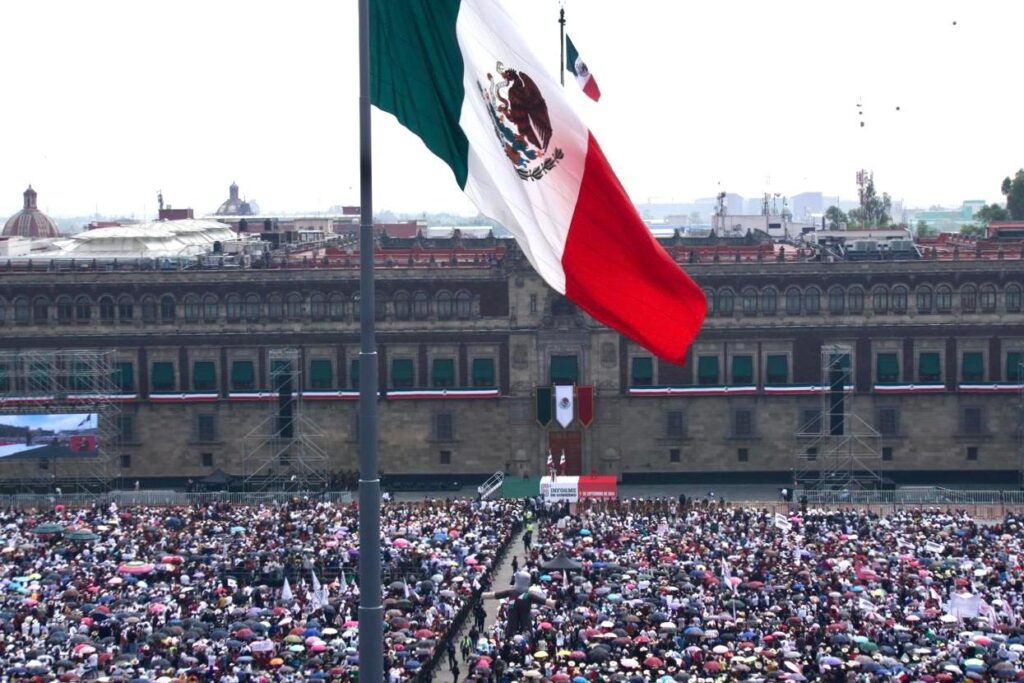 El mandatario llegó al Zócalo de la Ciudad de México alrededor de las 10:37 horas. Antes de subir al templete saludó a su esposa Beatriz Gutiérrez Müller y a la presidenta electa, Claudia Sheinbaum Pardo. Ya lo esperaba una multitud que se dio cita en la plancha desde horas antes.