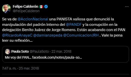 Además, recordó que Felipe Calderón, ex presidente y miembro destacado del PAN, lamentó públicamente la salida de Paula Soto, quien denunció la manipulación del padrón interno del partido y las presuntas conexiones con el Cártel Inmobiliario. Se mofa recordándole que hasta Calderón es despectivo con él y remata: “si lo que anda buscando es una cita, que la pida en Gobernación. El eventual diálogo inaugural entre la presidenta de la República y el líder del partido opositor más grande del país, por pequeño que sea, cae devastado en una hora”, expresó Ciro al respecto.