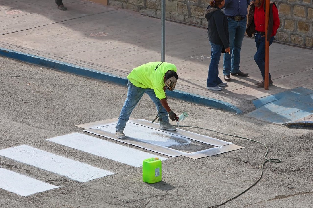 Sabinas, Coah.- La administración municipal encabezada por el presidente municipal José Feliciano “Chano” Díaz Iribarren continúa fortaleciendo la campaña permanente de bacheo, así como la pintura de cruces peatonales y rampas para personas con discapacidad, acciones coordinadas a través del Departamento de Imagen Urbana y sus cuadrillas operativas.