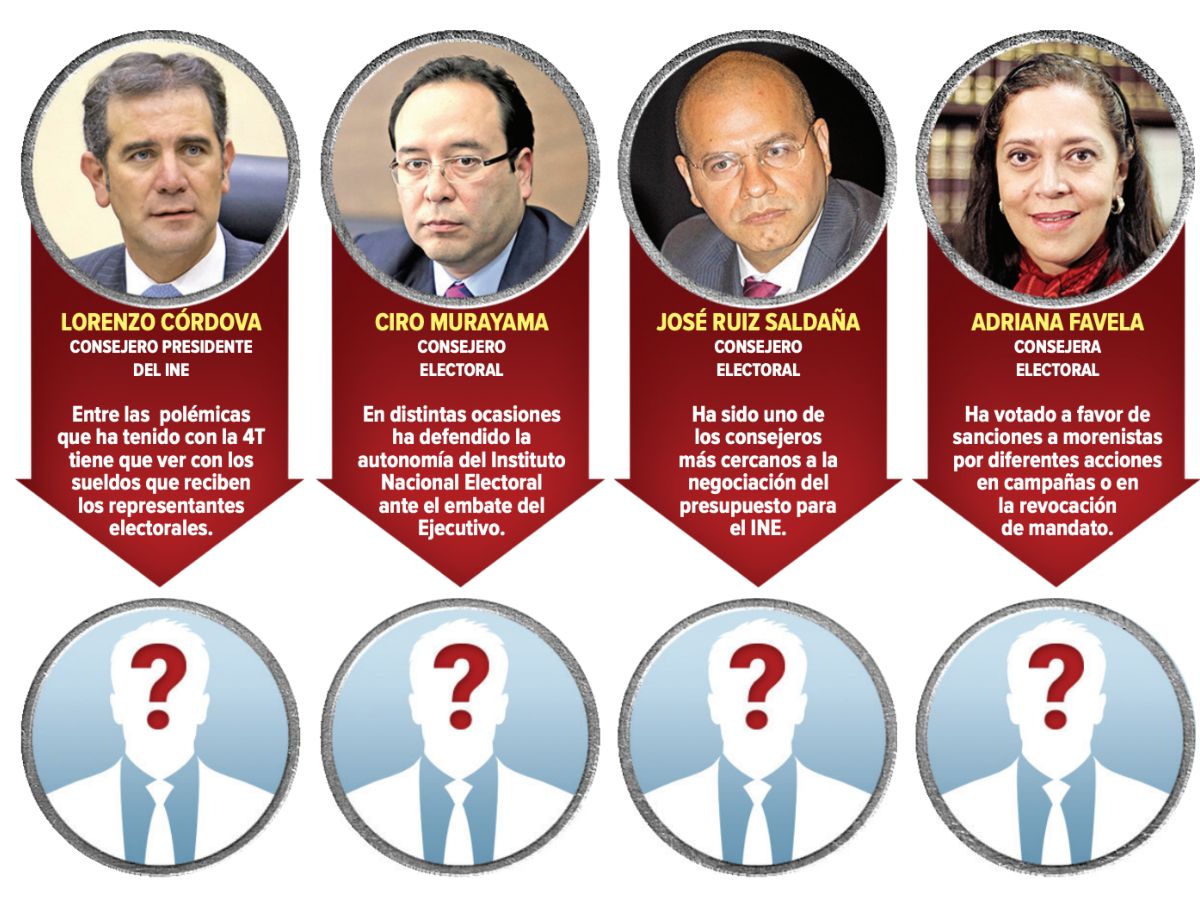 Los funcionarios electorales que resulten seleccionados por el Poder Legislativo tomarían funciones el próximo 4 de abril. Y serían quienes remplacen al consejero Presidente del INE, Lorenzo Córdova y a los consejeros Ciro Murayama, Adriana Favela y Roberto Ruiz, quienes concluyen sus funciones un día antes.
