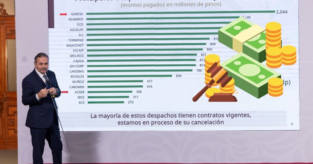 Entre los despachos involucrados en estos fraudes destacan Desnor, Gabssa, Beamber, ECD, Aguilar e ILS, que recibieron pagos millonarios. En el caso de Desnor, su representante legal incluso forma parte de la Comisión de Vigilancia del Infonavit, propuesto por la Coparmex.