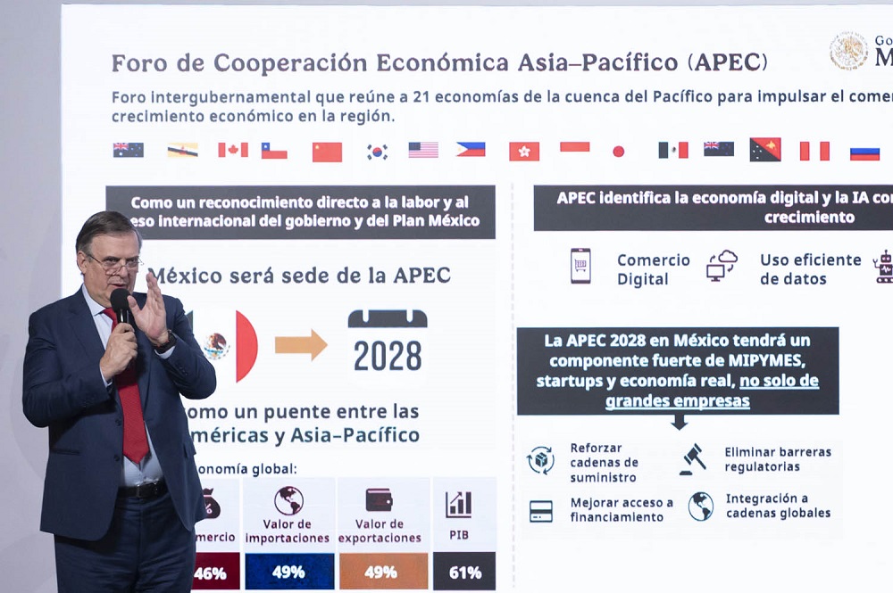 Durante el mismo anuncio, el titular de Economía informó que México será sede en 2028 del Foro de Cooperación Económica Asia-Pacífico (APEC), uno de los organismos más influyentes del mundo, integrado por economías como China, Estados Unidos, Canadá, Japón, Corea del Sur y Australia.