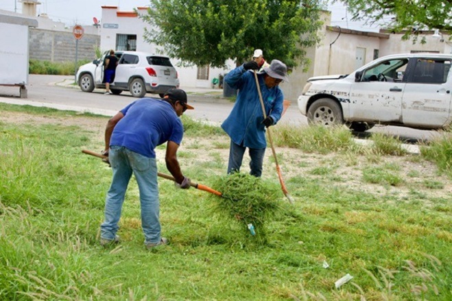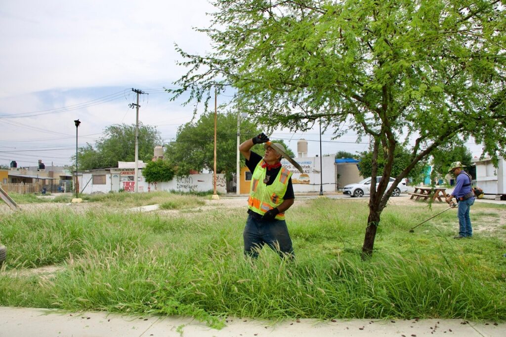 Con apoyo de cuadrillas municipales, se llevaron a cabo acciones de deshierbe, retiro de basura, restauración de porterías y juegos infantiles.