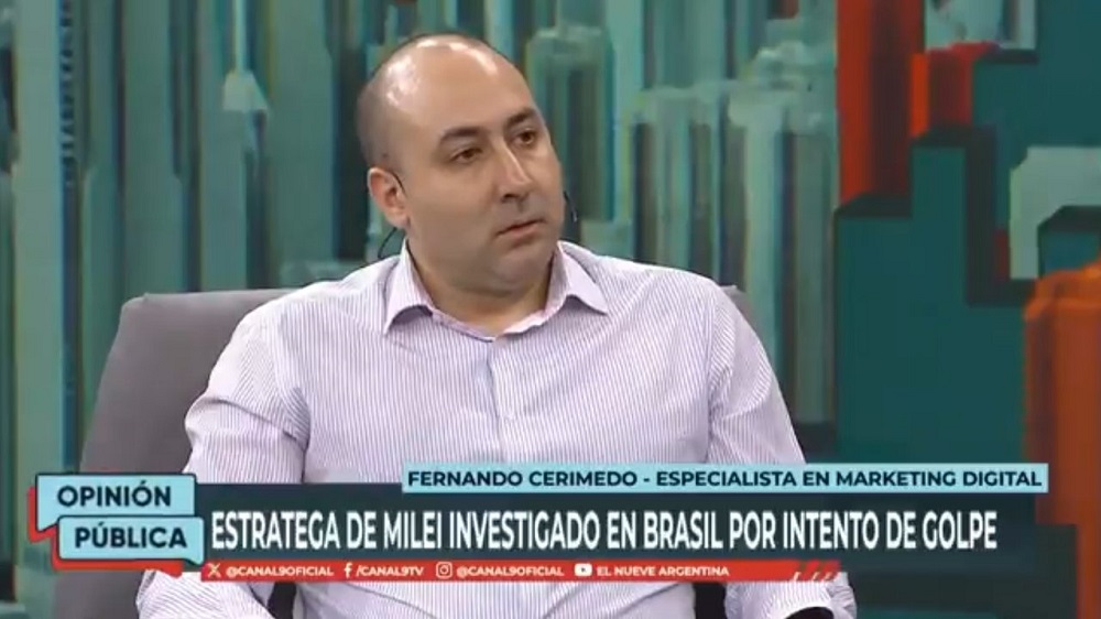 Tras la derrota de Bolsonaro en 2022, Cerimedo amplificó desde Argentina la narrativa del “fraude electoral”, una operación digital que desembocó en los ataques al Congreso y al Palacio de Gobierno en Brasilia.