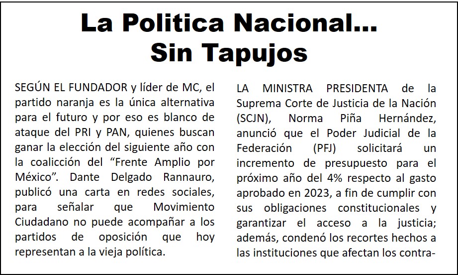 LA MINISTRA PRESIDENTA de la Suprema Corte de Justicia de la Nación (SCJN), Norma Piña Hernández, anunció que el Poder Judicial de la Federación (PFJ) solicitará un incremento de presupuesto para el próximo año del 4% respecto al gasto aprobado en 2023, a fin de cumplir con sus obligaciones constitucionales y garantizar el acceso a la justicia; además, condenó los recortes hechos a las instituciones que afectan los contrapesos de poderes.