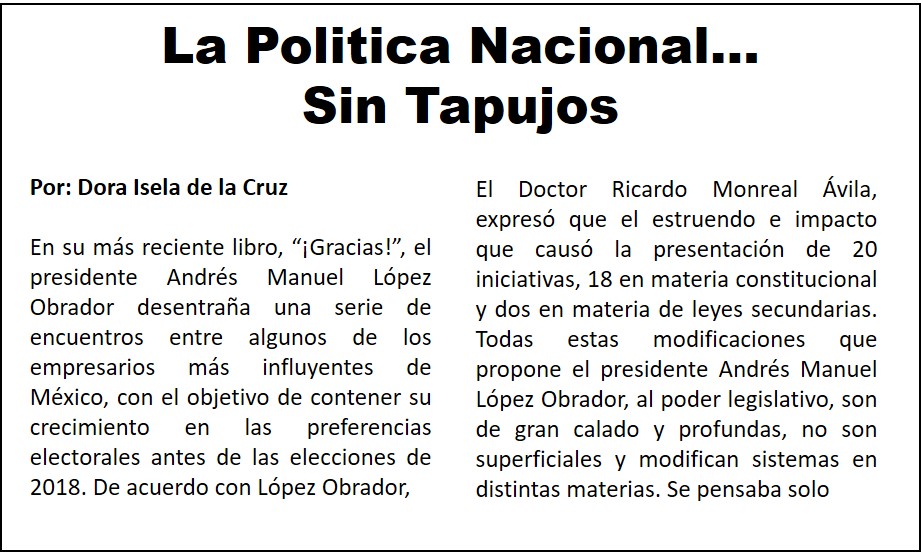 El Doctor Ricardo Monreal Ávila, expresó que el estruendo e impacto que causó la presentación de 20 iniciativas, 18 en materia constitucional y dos en materia de leyes secundarias. Todas estas modificaciones que propone el presidente Andrés Manuel López Obrador, al poder legislativo, son de gran calado y profundas, no son superficiales y modifican sistemas en distintas materias. Se pensaba solo cinco: la electoral, judicial, salario mínimos, jóvenes construyendo al futuro y pensiones.