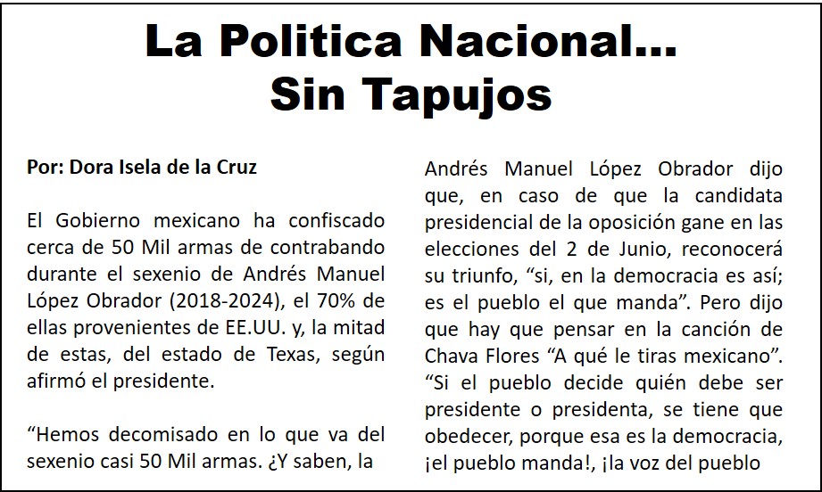 Andrés Manuel López Obrador dijo que, en caso de que la candidata presidencial de la oposición gane en las elecciones del 2 de Junio, reconocerá su triunfo, “si, en la democracia es así; es el pueblo el que manda”. Pero dijo que hay que pensar en la canción de Chava Flores “A qué le tiras mexicano”. “Si el pueblo decide quién debe ser presidente o presidenta, se tiene que obedecer, porque esa es la democracia, ¡el pueblo manda!, ¡la voz del pueblo es la voz de Dios y la voz de la historia!