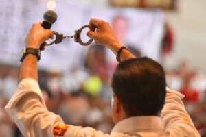Ahí “El Tigre” agradeció el respaldo de las mujeres y hombres valientes de las fuerzas progresistas y democráticas del estado, como Yamille Mtanous, presidenta del Consejo Estatal de Morena, y el profesor José Guadalupe Céspedes.