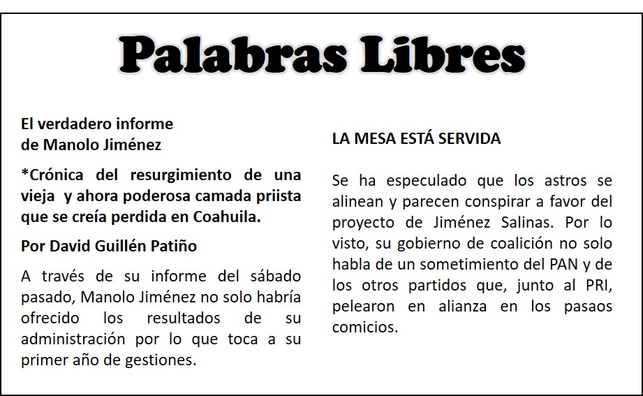 Se ha especulado que los astros se alinean y parecen conspirar a favor del proyecto de Jiménez Salinas. Por lo visto, su gobierno de coalición no solo habla de un sometimiento del PAN y de los otros partidos que, junto al PRI, pelearon en alianza en los pasaos comicios.