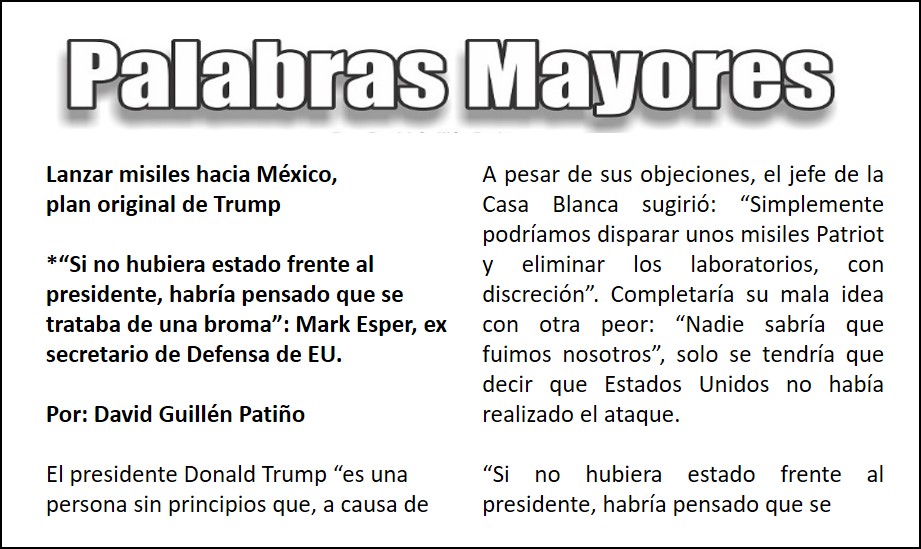 “Si no hubiera estado frente al presidente, habría pensado que se trataba de una broma”, redactó Esper. Las acciones bélicas en dirección a México se multiplicaban constantemente entre los colaboradores de Donald Trump.