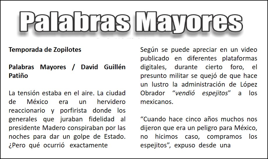 La cita viene al caso en virtud de que el presidente Andrés Manuel utilizó el término “zopilotear” para referirse a la obsesión de sus adversarios en cuanto a hacerlo trastabillar, según dejó entrever en la conferencia de prensa del lunes.