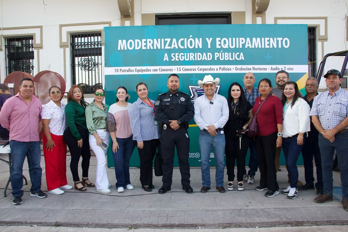 Durante la presentación realizada en la explanada de la plaza principal Benito Juárez García, el edil externo que Sabinas está a la vanguardia en modernización y equipamiento tecnológico de la policía, como nunca antes se había visto, destinando los recursos financieros necesarios para garantizar la seguridad que las familias demandan.