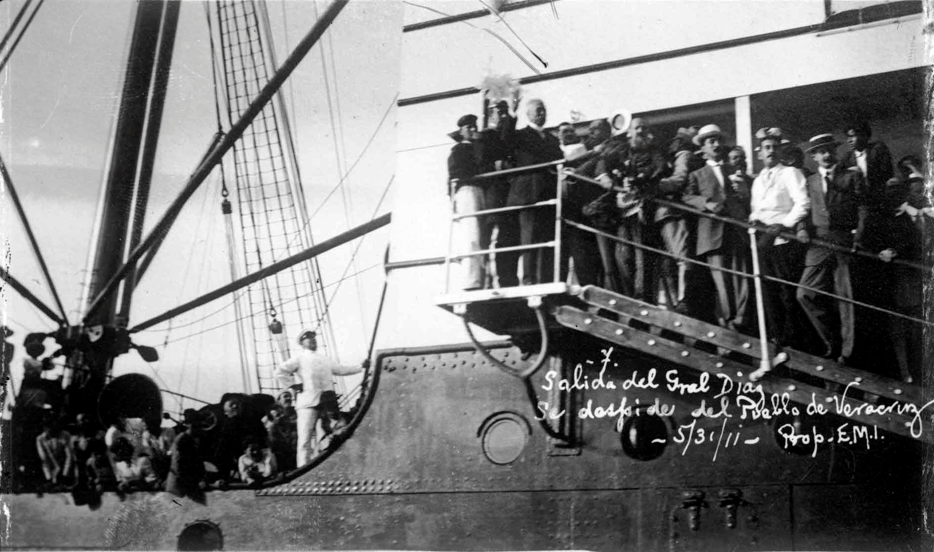 A bordo del Yupiranga, antes de partir al exilio rumbo a Francia